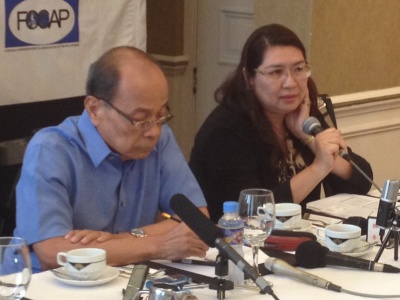 Hindi lang mga isyu sa South China Sea o West Philippine Sea ang nararapat pag-usapan ng mga Pilipino at Tsino. Niliwanag ni dating Philippine Ambassador to the United Nations at DFA Undersecretary Lauro Baja (kaliwa) na nariyan ang kalakal, kultura at investments. Ipinaliwanag din ni University of the Philippines Professor Aileen Baviera na nararapat maging maliwanag sa pamahalaan na may mga palatuntunang hindi nararapat mabago sa pagpapalit ng liderato. (Larawan ni Melo Acuna)